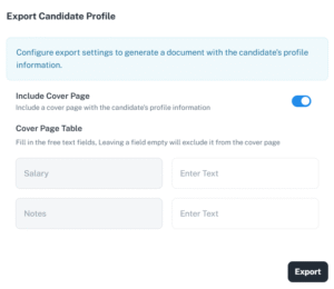 Present candidates in a clean, branded resume format with just one click. Our AI-generated exports look great and highlight the right info. No need for hours of formatting.